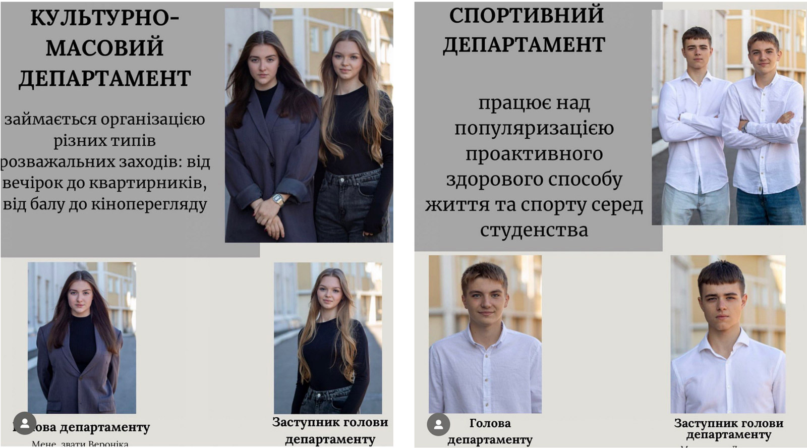 - creation of good conditions for leisure (traditional events: «Dedication to first-year students»; «First-year debut»; Ukrainian student song contest «Autumn vernissage»; student Winter Ball; Student beauty MAUP; Mr. MAUP; Festival of artistic creativity «Artpalitra»; theatrical show «Cossack fun» for the Feast of the Intercession of the Virgin Mary; photo exhibitions; flower exhibitions; exhibitions of household items and dishes of those nationalities represented by students of different countries studying at the Academy; sports competitions in football, volleyball and street ball; participation in charity events (St. Nicholas Day event for orphans); meetings with well-known public and political figures.
