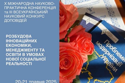 We invite you to participate in the X INTERNATIONAL SCIENTIFIC AND PRACTICAL CONFERENCE "DEVELOPMENT OF INNOVATIVE ECONOMY, MANAGEMENT AND EDUCATION IN THE NEW SOCIAL REALITY" and in the III ALL-Ukrainian SCIENTIFIC COMPETITION OF REPORTS