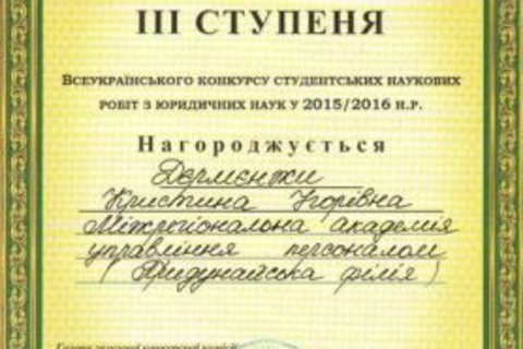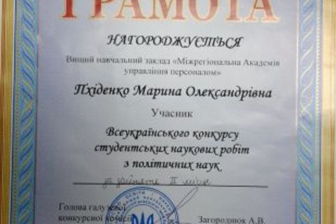 Student of the 2nd year of Danube branch of IAPM Christina Dermenzhi got a III degree diploma →