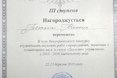 Student of the 2nd year of Danube branch of IAPM Christina Dermenzhi got a III degree diploma →