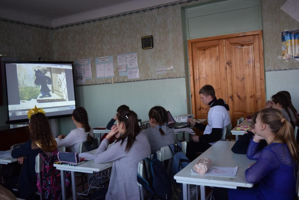 The conversation was also about forms and means of combating domestic violence. When communicating with junior students, students demonstrated excerpts from their favorite tales and cartoons for children illustrating cases of violations of children's rights. Every situation was discussed together. There were also riddles, poems and slides that helped children better understand their rights and ways to protect them.
