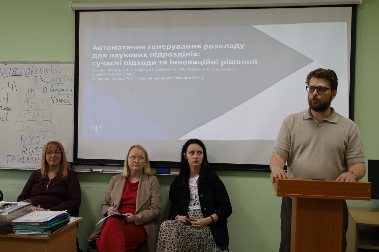 - Andrii Abramov, Rodion Havelya, Ruslan Ovcharenko, Lina Osadcha, Oleksandr Snezhkov - “Automatic generation of schedules for scientific departments: modern approaches and innovative solutions” (supervisor: Alina Koval);