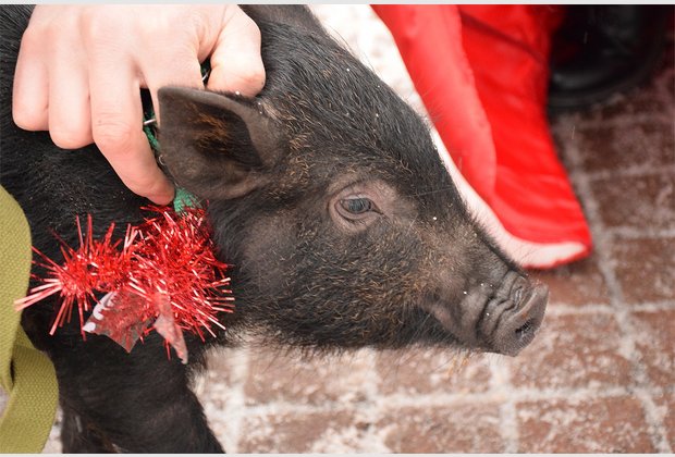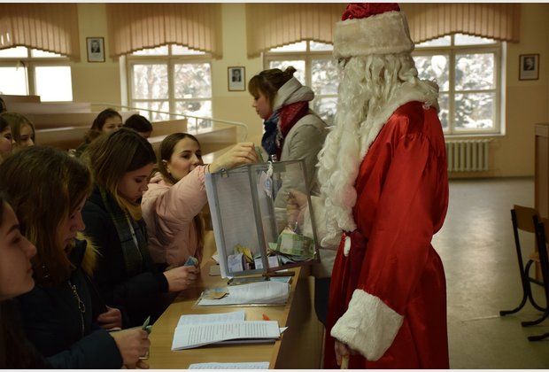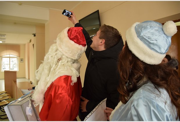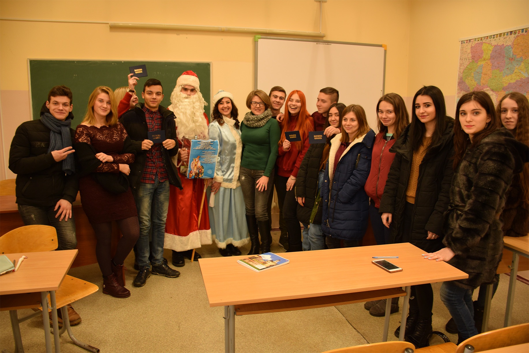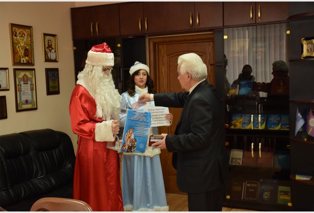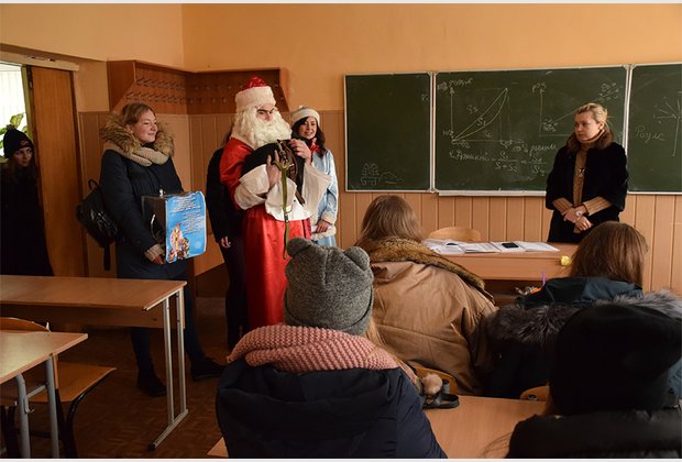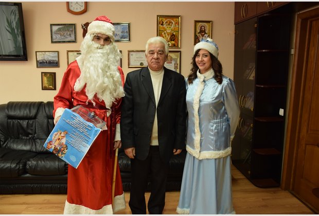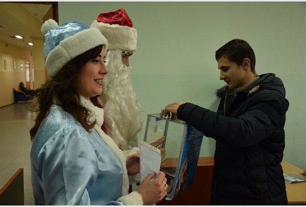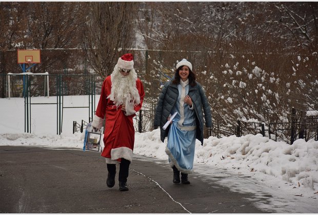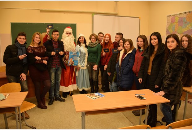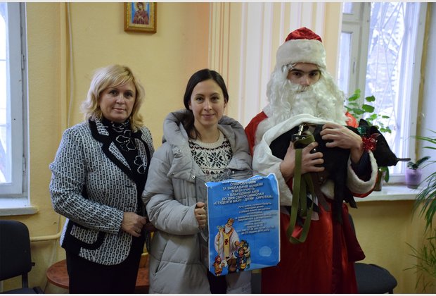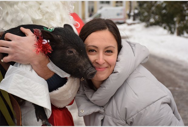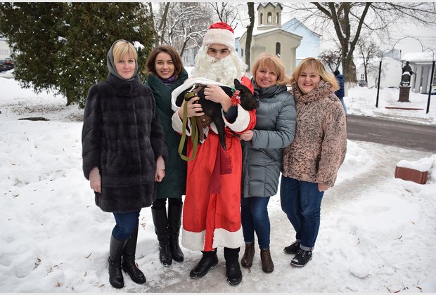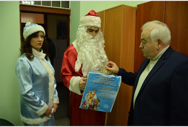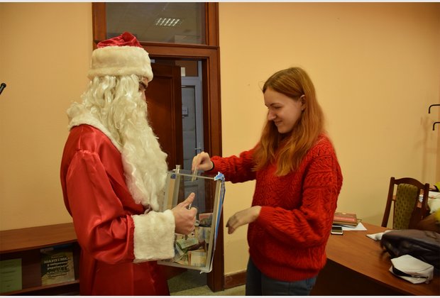 The head of the student council of the IAPM Taras Besarab during the action became Santa Claus, and the specialist of the extracurricular activities of Radmila Cherednichenko became Snow Maiden. The third participant of the event was the fleet-footed pig Isolde.