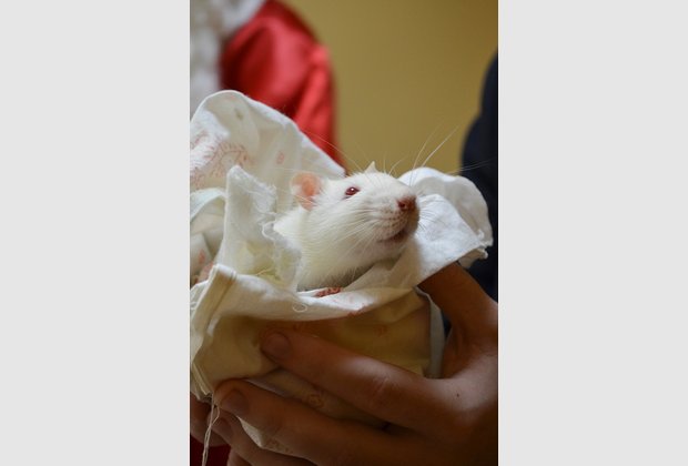 The employees of the extracurricular activities department, representatives of the student self-government of the Academy, taking with them the next year’s symbol - a rat and magic cookies, went through training units, departments and departments, inviting everyone to join the action. There was also a surprise for those who were not indifferent: the opportunity to take a picture with a rat Athanasius and New Year's heroes, as well as try delicious cookies.