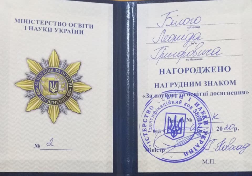 Our congratulations to the director of Khmelnitsky Institute of IAPM Bilyy Leonid Grigorovich with the award of the honorary badge "For scientific and educational achievements" by the Ministry of Education and Science of Ukraine.