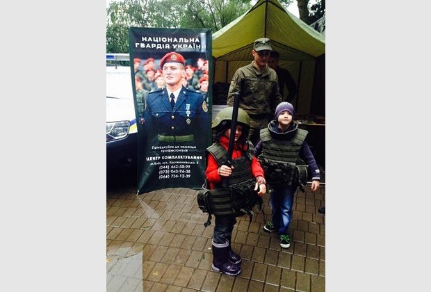 On open grounds in T. Shevchenko's square children freely tried adult specialties in the improvised project "The City of Professions". The organizers planned to present 90 kinds of different specialties for children, however, due to rain, their number was reduced to 75.
