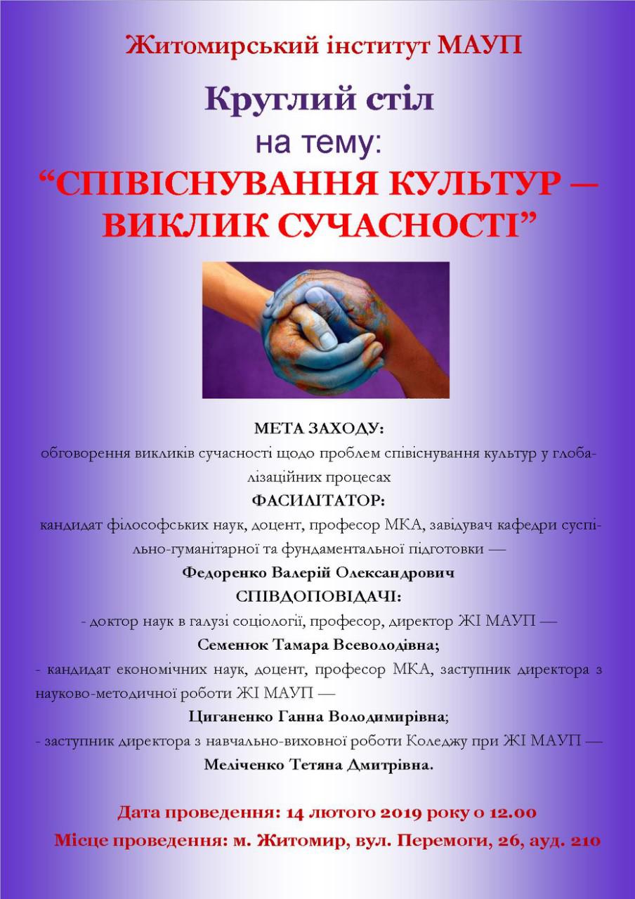 The roundtable conference "Coexistence of Cultures - Challenge of the Present" at the Zhytomyr Institute