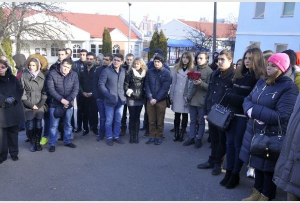After the speech Nicholai Fedorovich announced a minute of silence, and students laid flowers at the monument.