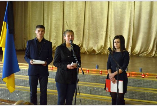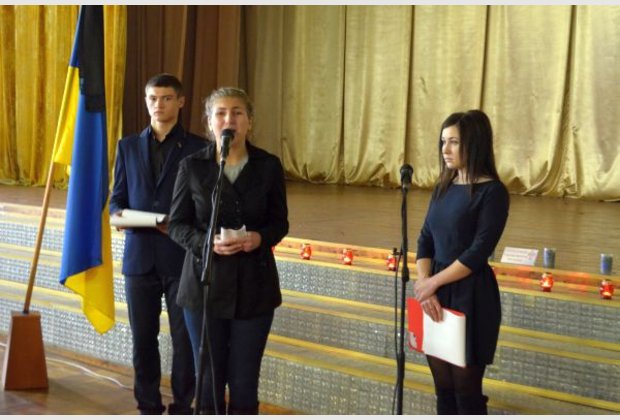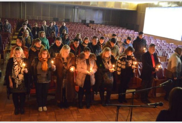 November 27, at 12 am in the auditorium of the Khmelnytsky IAPM was held a meeting-requiem to the day of commemoration of Holodomor and political repressions victims "Ukraine Remembers, the World Recognizes" involving teachers and students. On meeting-requiem was viewed the presentation "Famine 33". The event continued with ligting candles in memory of the innocent victims of famine-genocide to remember them in a moment of silence and prays. During the prayer people ate pieces of holy bread.
