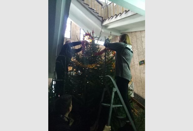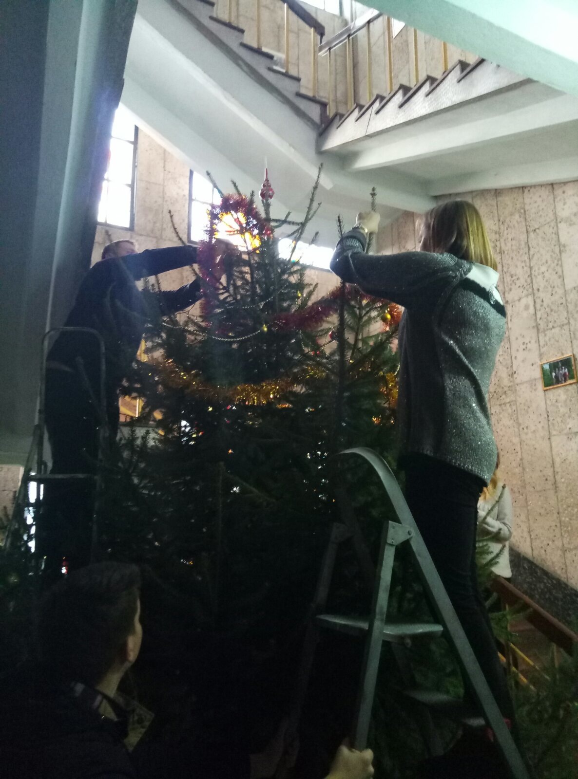 At the initiative of the Student Council at the Khmelnitsky Institute, students, together with teachers, decorated a Christmas tree. The green beauty was installed in the hall of the Institute.