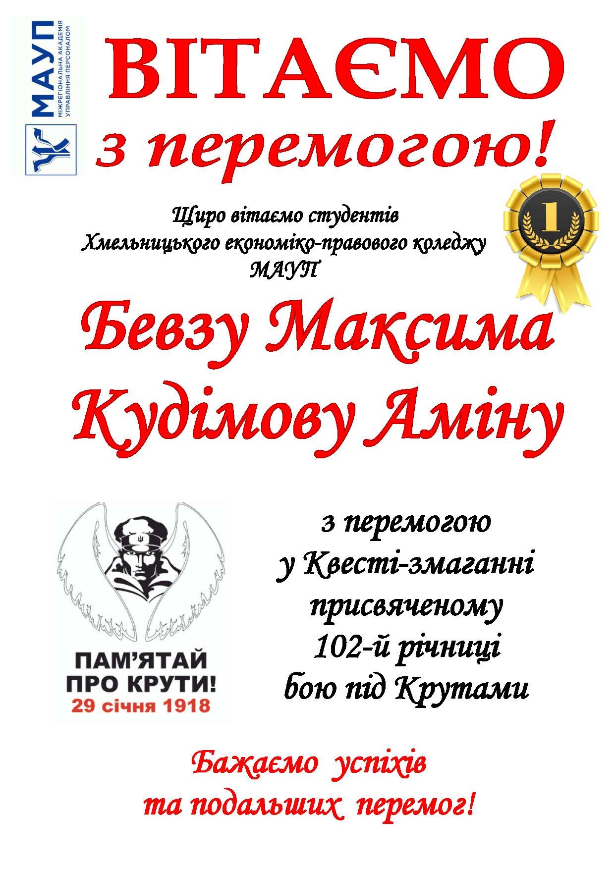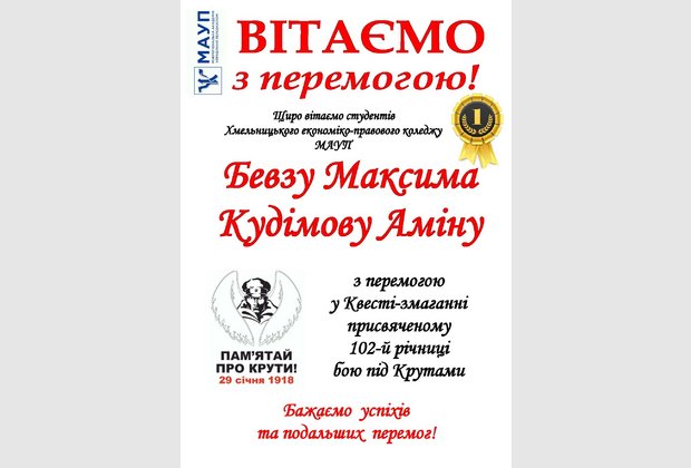 The team of Khmelnitsky College of IAPM won the citywide quest-competition dedicated to the 102nd anniversary of the Battle of Kruty