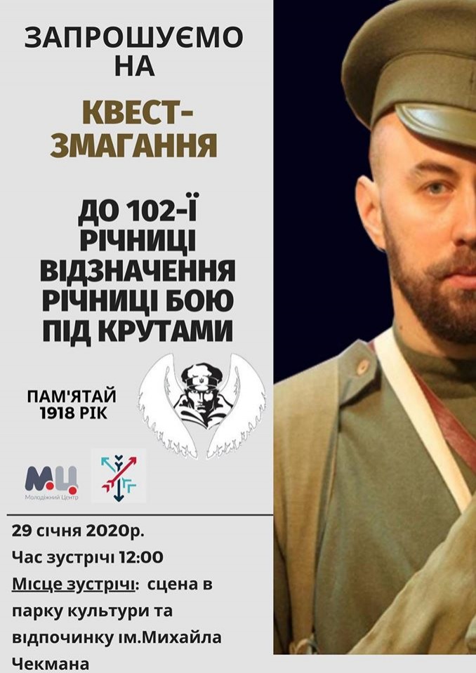 The quest competition dedicated to the 102nd anniversary of the Battle of Kruty took place on January 29, 2020 at the Mikhail Chekman Culture and Recreation Park. The event was organized by the Youth Center.