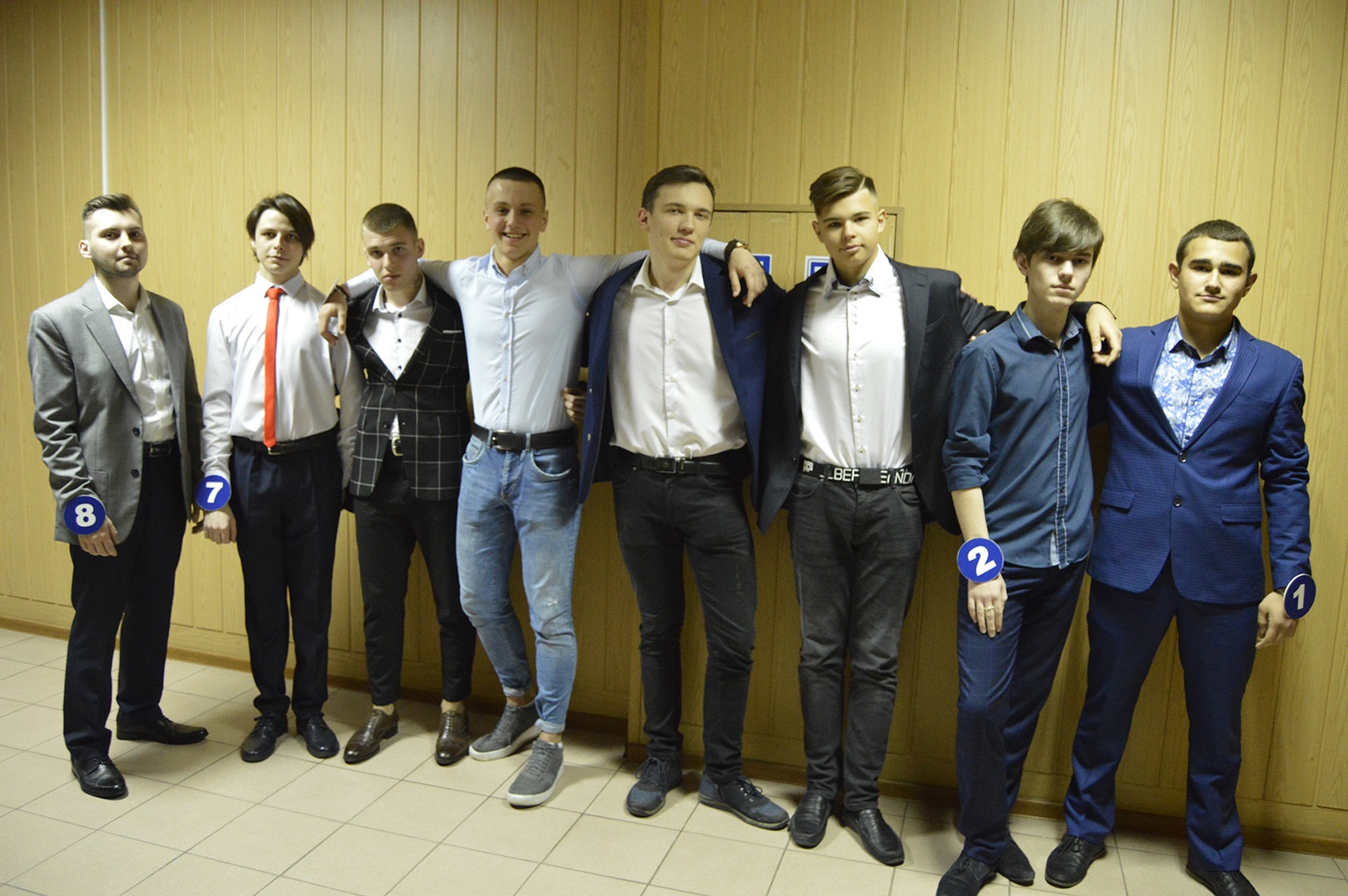 The young men had to demonstrate: video in the contest "Nice to meet you", knowledge of the rules of etiquette and general erudition - during the competition "The Genuis", athletic skill and wit - in the competition "And you are weak!", talents - in the competition "In captivity muses" ability to keep on the stage - during a fashion show in a grand suit, as well as to provide portfolio to jury.