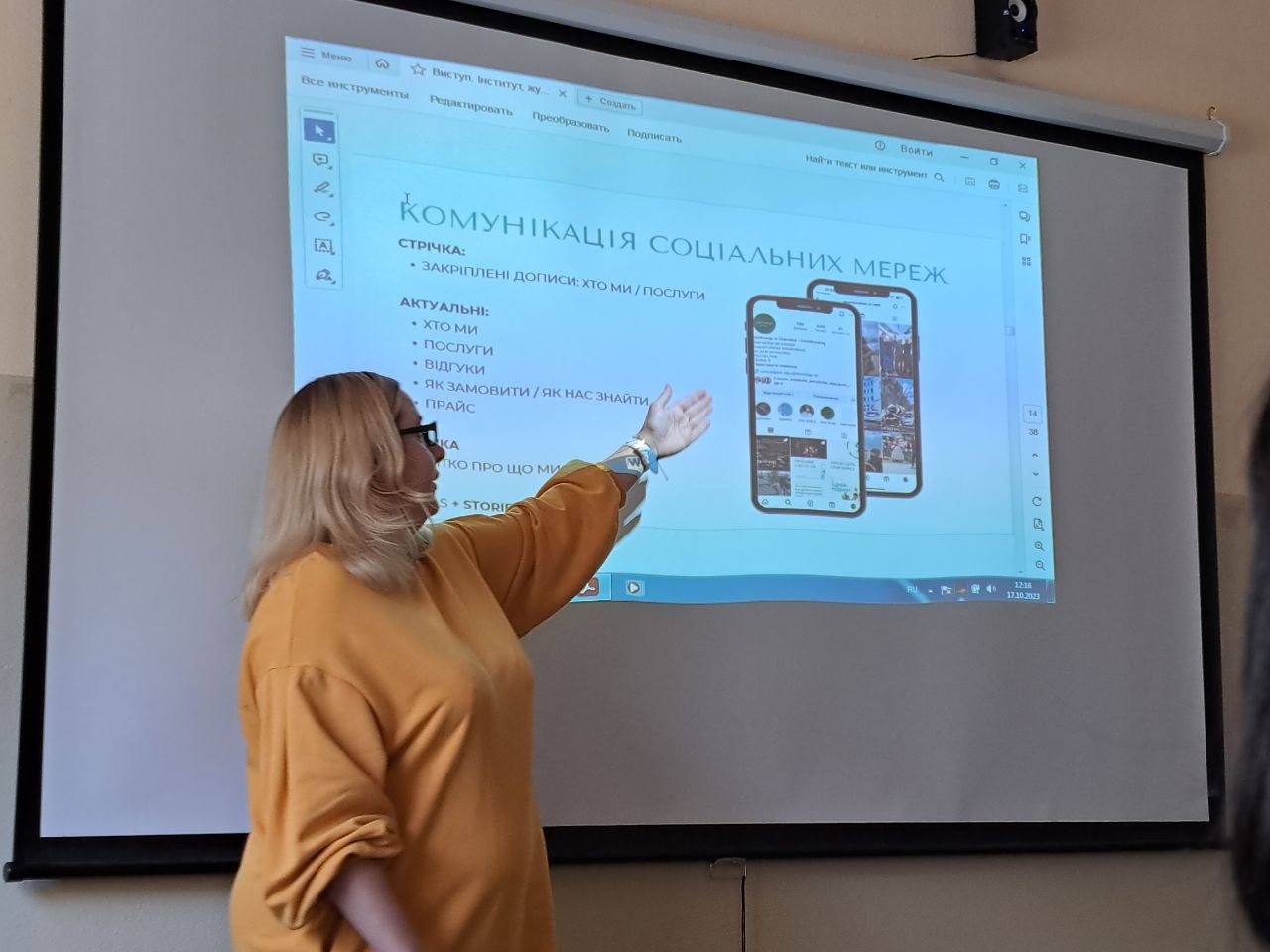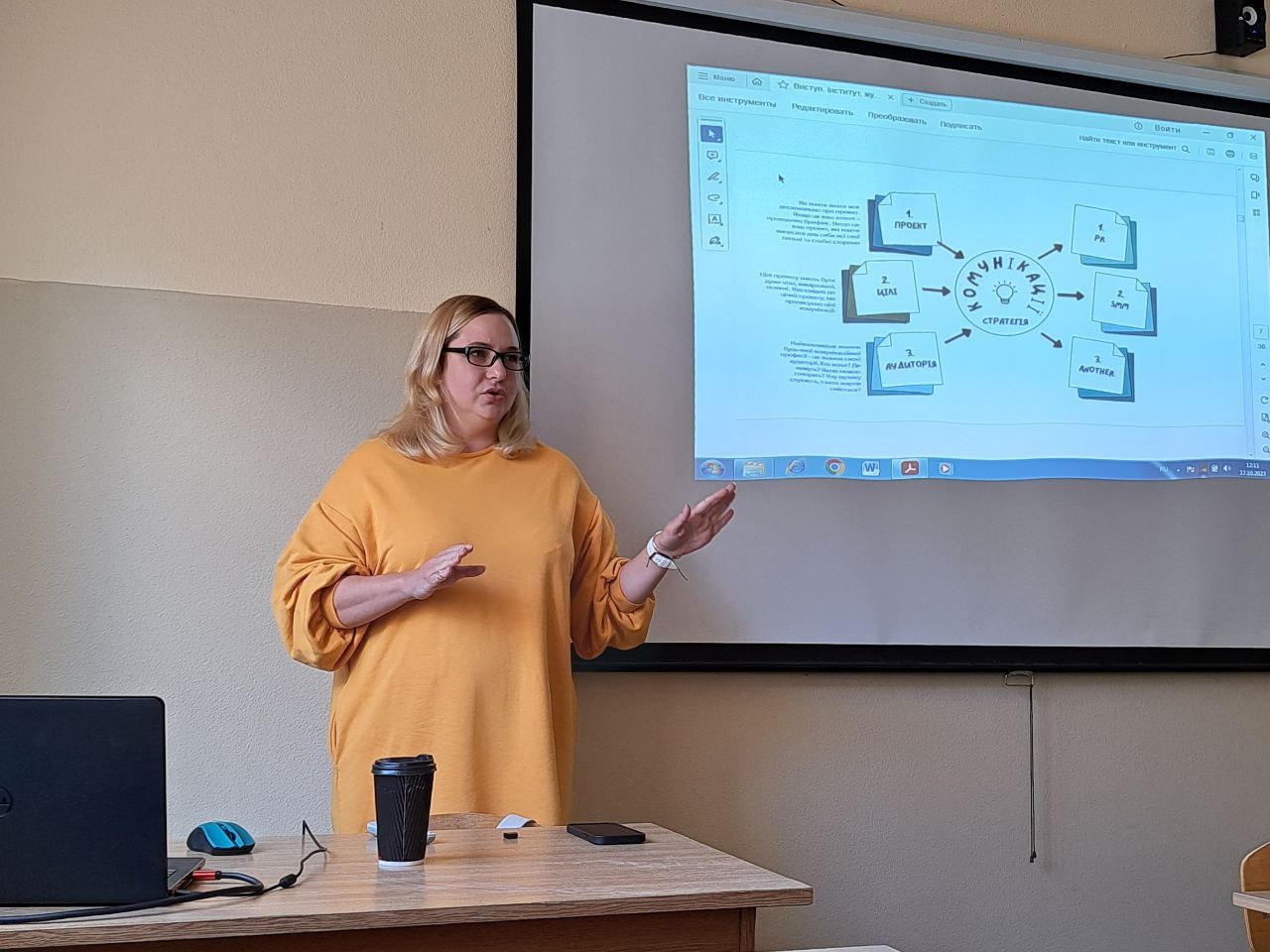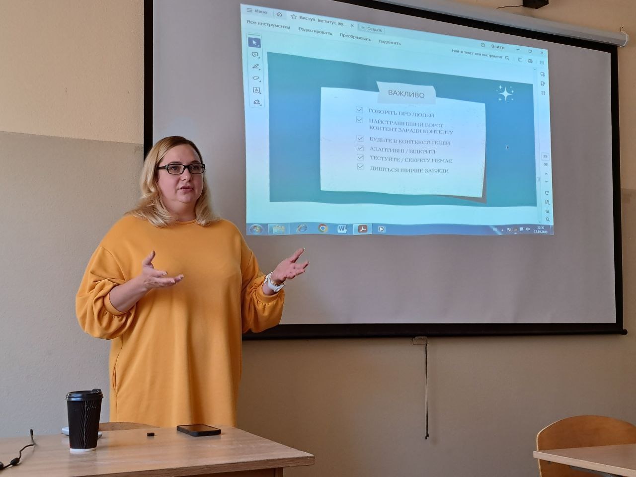 On October 17, the Center for Psychological Counseling and Psychological Counseling and Psychocorrection Center of IAPM held a master class “How to speak in social networks to make your project heard”. The organizer of the master class, Khrystyna Vorushylo, has been studying social media for 5 years, knows how to feel in them, and is also an ambassador of the project to restore educational institutions in the city of Irpin.
