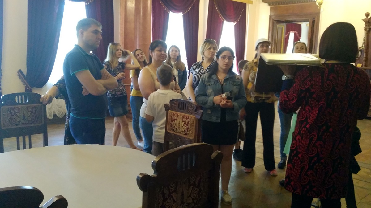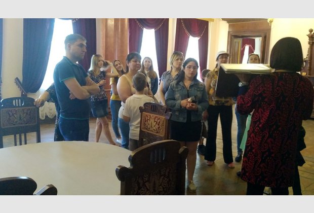 Listening to the emotional story of the guide of the reserve that were rich of facts of the, the tourists learned about the history of Kachanivka's origin, about the fate of the owners of the estate, in particular, Tarnovsky, Kharitonenky and others, examined the palace and park, St. George's Church, "romantic" ruins... The paths of the famous brainchild of Ivan Skoropadsky - arboretum "Trostyanets"- the travelers were conducted by the local ethnographer Rostislav Malyarenko. And the excursion from the private museum, whose subjects of exposition are closely linked with the history of the kind of the founder of the park, with the history of the area, began. In the village of Sokiryntsi, tourists had the opportunity to admire the palace and park, which once belonged to the family of landlords Galaganov.
