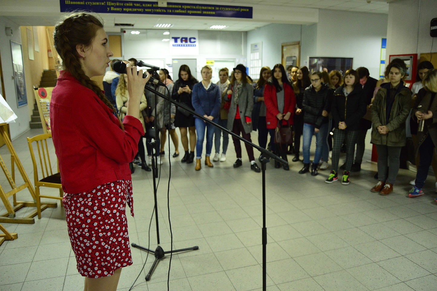 The action ended with a concert, during which students Volodymyr Zinchenko, Yana Andrienko, Oleksiy Oliynyk, Anna Knyka, Veronika Tkachenko, Aleksander Kelbas and academic secretary of the specialized academic council Tetiana Arifhodzhayeva performed songs written during the Second World War or devoted to it.