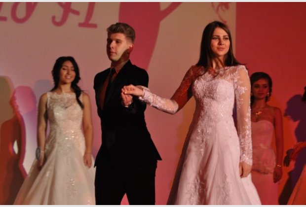 Every girl wants to wear a wedding dress and there was such a competition. On the "parade of wedding dresses", participants marched in festive attire on stage under spotlights flickering.