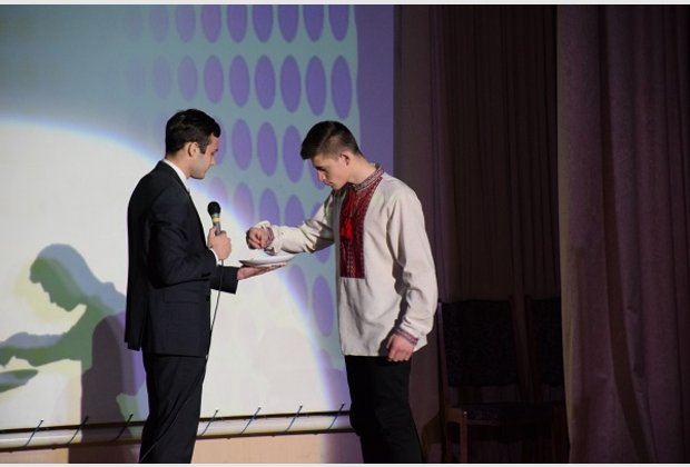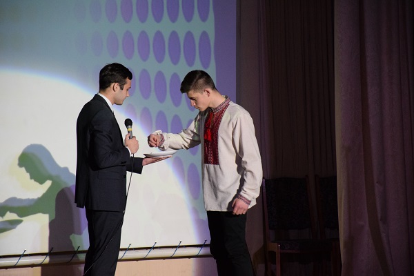 The festive program started with getting acquainted with the applicants for the title "Mr. IAPM". The hosts read out the questionnaires of each participant, which the students filled out on the eve of the competition. About Dmitriy Pripipkin, the presenters told that in his spare time he is engaged in karate and tennis, and the goal that the guy sets himself: to become an outstanding sportsman of Ukraine, to receive prizes, for the further development of his state. Alexey Oleinik indicated in the questionnaire that his life credo is the following: "I do not have everything I love, but I love everything that I have." The main character of the guy is peacefulness. But the participant Denis Litvinenko in the questionnaire said that his main character traits are stubbornness and purposefulness. Hobby of the contestant is football and auto, in particular about the latter he jokingly wrote "to break - to repair". The interesting purpose of his life was told to the organizers and Bogdan Poplavsky: Bogdan sets a goal to become a millionaire, move to London and become the father of Eva's daughter. The next participant, Philip Bozrikov, filling out the questionnaire, wrote: "The main features of my character character are responsiveness, responsibility and indestructibility, and the main drawback is laziness." Contestant Igor Smilash defined his life credo as follows: "Life is a constant movement, new interesting acquaintances and mutual help." And about Stanislav Besedin, the presenters told that the guy sets a goal to become a well-known TV presenter, although he defined shyness as the main drawback of his character. Andrei Lokhvitsky noted his hobby as a hobby guitar player and photo art. Maxim Boyko wrote the main character trait - a positive, and his main weakness is the guy's inattention.