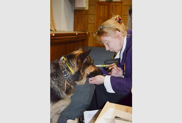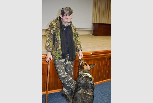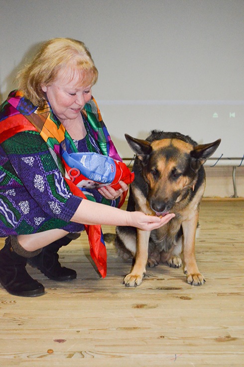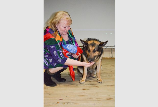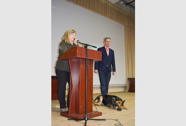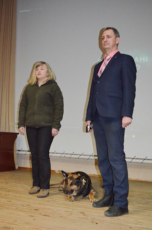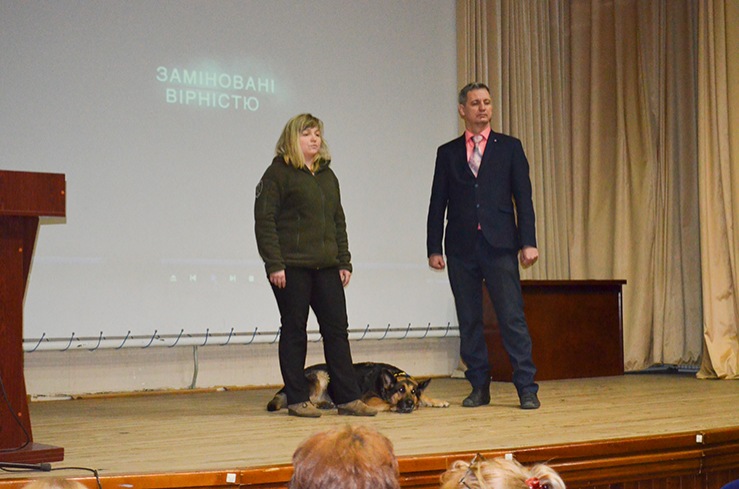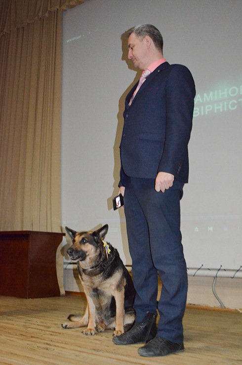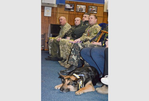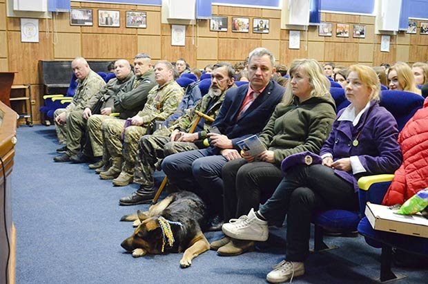 "The youngest volunteer" – a Buddy dog, a favorite of the entire Aidar battalion, the heroine of the movie "Replaced by Faithfulness" – patiently waited for the stage and gladly gave everyone the opportunity to "talk" (especially for cookies) and take pictures with her.
