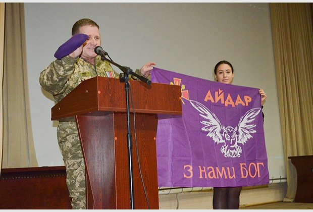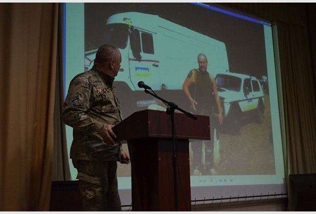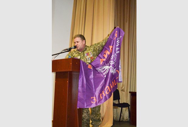 The stories of the participants of the event were accompanied by photos, excerpts from the film. In memory of the meeting, the Aydar people presented the Battalion flag to the Interregional Academy of Personnel Management.