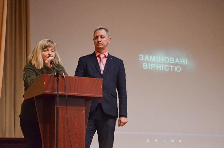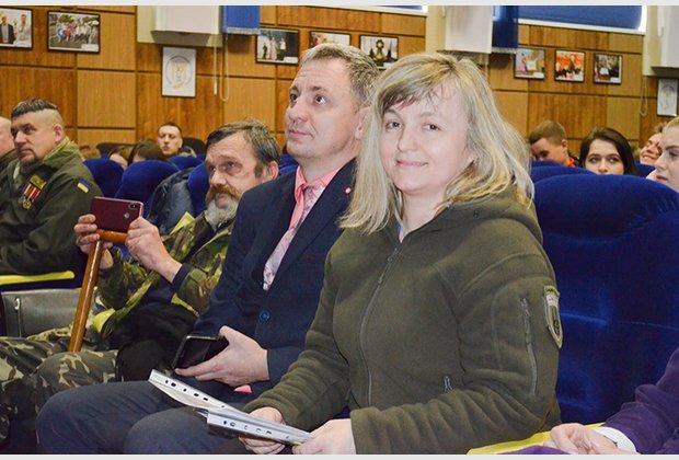 Addressing the audience, Svetlana Bevz, a woman who volunteered at the anti-terrorist operation in the summer of 2014, was the commander of the anti-aircraft calculation, provided medical care, and is now being taken care of by the idea of rehabilitating veterans, their socialization, and helping families who lost relatives during the fighting in the east of Ukraine - cited the words of one of the mothers: "Now I can die peacefully, knowing that my son's memory is honored." Svetlana, quoting the patriotic poems of Alexandra Burbella's daughter, urged young people to study well, because the enemy cannot defeat an enlightened nation and truly love their Motherland.