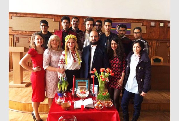 Also, the post-graduate student Azer Aliyev and Dr. Sorush joined the congratulations. And Dean for work with foreign students Marina Serednyak welcomed everyone in English!