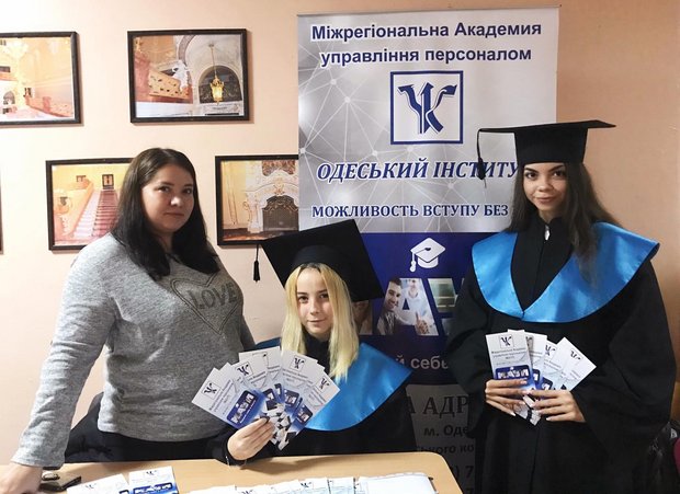 Olena Gusenko, freshmen of the specialty "Psychology" Violetta Shepeleva, Sophia Bulgakova and the deputy head of the department of management, finance and administration of the Odessa institute.