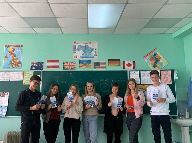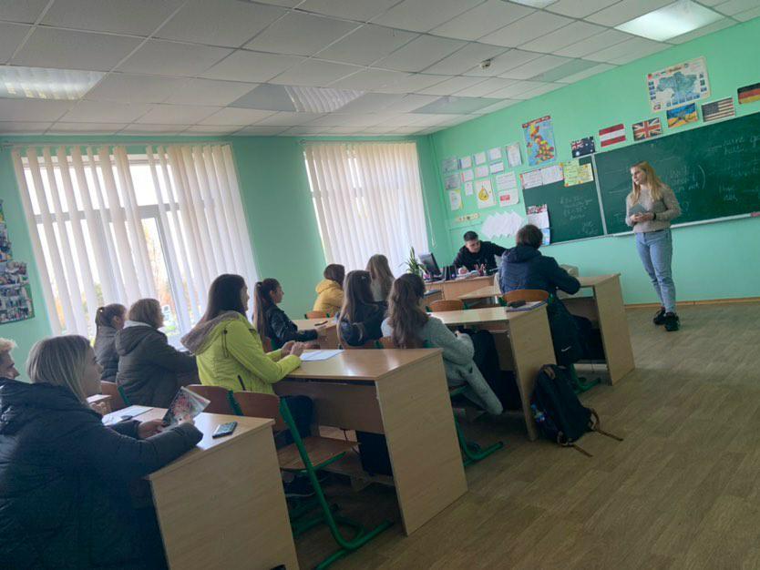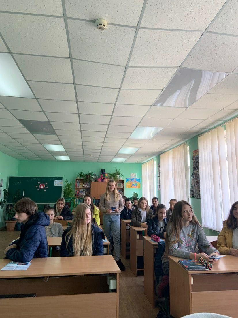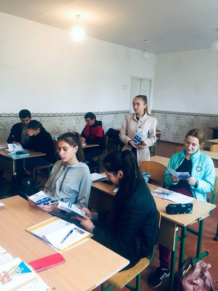 Members of Odesa Institute Student Orientation Group conducted career guidance in the cities and villages of the Odessa region. The student paratrooper attended 10-11 grade schools and spoke about the Academy and the Institute by handing out flyers. 1st year students Tetiana Rychak, Victoria Tomchenko, Inna Kotushevska presented the Academy at the Plakhtyevsky school №2 of the Sarat district, at Karolino-Bugaz school №1 of Ovidiopolsky district, at Bilyaev school №3. 2nd year students Olena Demyanova, Maria Tarasova and others also visited Bilyayivka and Belgorod-Dnistrovsky.