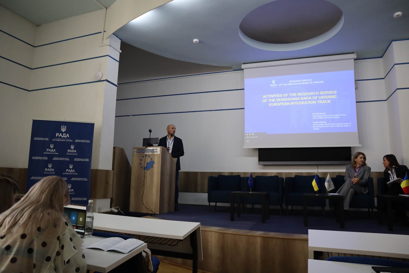 Faculty staff of the Prince Vladimir the Great Educational and Scientific Institute of Law joined special session "Institutional Transformations in the Ukrainian Parliament in the Context of European Integration" and "Activities of the Research Service of the Verkhovna Rada of Ukraine on the European Integration Track". Research Service employees delivered reports to the event participants. As result of session, participants deepened their knowledge and practical understanding of European approaches to reforming national legislation in the process of joining the European Union.