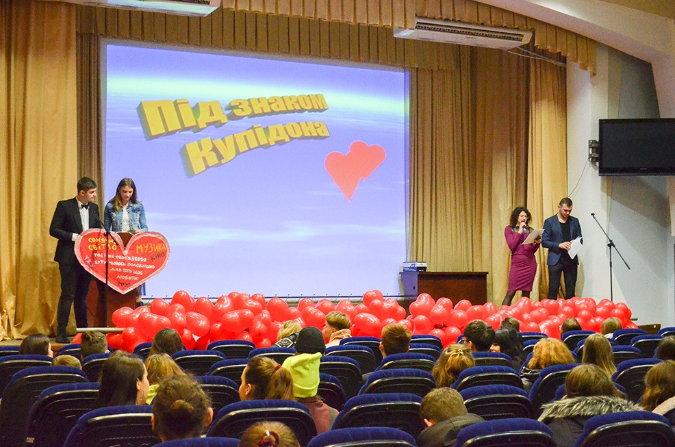 Students of the Presidential University of the Academy, the Institute of Economics and Law at the IAPM and the Institute of Design, Architecture and Journalism, who gathered in the Ukraine movie and concert hall, decided to romantically, cheerfully, and most importantly, have a meaningful celebration of Valentine's Day. And they succeeded!