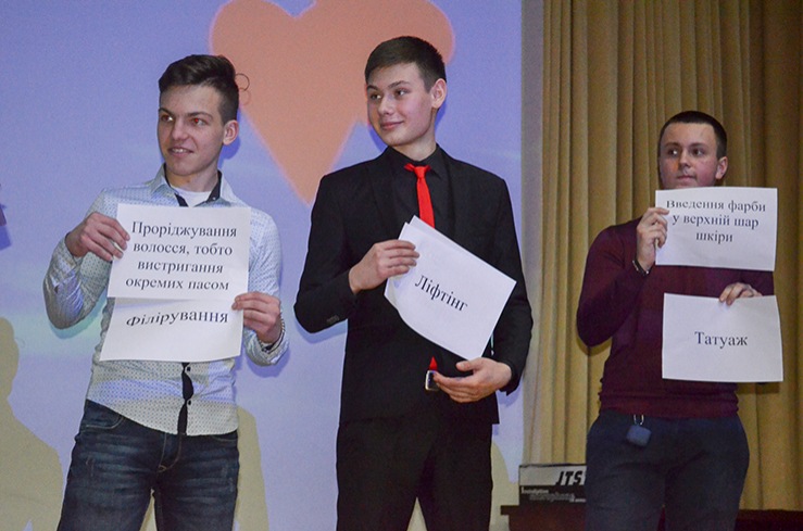 The competition and entertainment program “Under the Sign of Cupid” did not leave anyone indifferent. The basis was the principle of the popular youth television game "Who's On Top". Two teams took part in the competition: girls and boys. The tasks that the organizers offered their attention were varied and interesting, as well as ridiculous. Participants had the opportunity to demonstrate oratory, and the ability to guess and compose words, and knowledge of modern Ukrainian songs, and the skills to quickly collect the details of the lego constructor and present their works. The team of girls by name determined which country the football club plays for. Young men guessed the names of cosmetic procedures, without which no modern young lady can do. The teams were also offered bonus questions, which could only be answered with knowledge of psychology, because they related to the characteristics of female or male thinking.