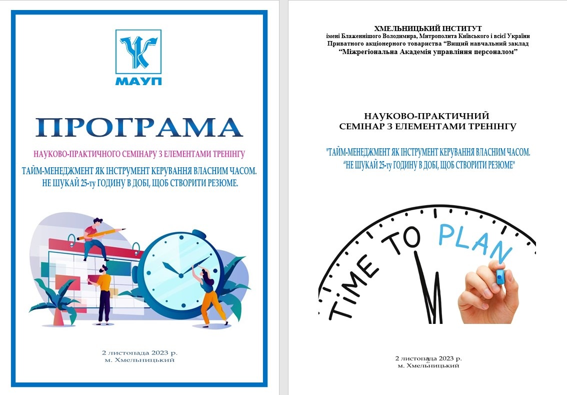 On November 2, 2023, a scientific and practical seminar with elements of the training “Time management as a tool for managing your own time. “Don't look for the 25th hour in the day to create a resume”.