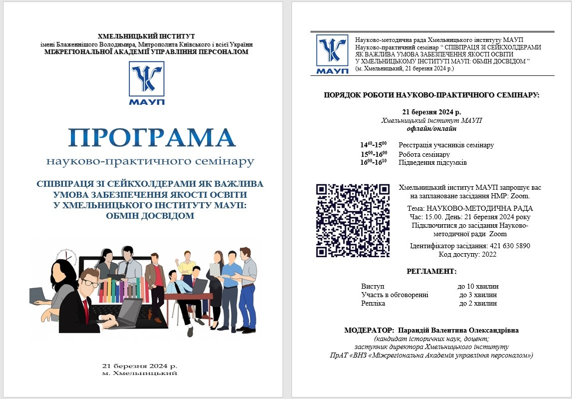 A scientific and practical seminar was held “COOPERATION WITH STAKEHOLDERS AS AN IMPORTANT CONDITION FOR ENSURING THE QUALITY OF EDUCATION AT THE KHMELNYTSKY INSTITUTE OF MAUP: EXCHANGE OF EXPERIENCE”