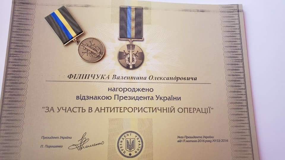 The troops of the Armed Forces of Ukraine who defended Ukraine's independence, sovereignty and territorial integrity were rewarded by the President of Ukraine, and they directly participated in the antiterrorist operation in the Donetsk and Luhansk Oblasts, ensuring its conduct, staying directly in the area of the anti-terrorist operation during its conduct are awarded the badge.