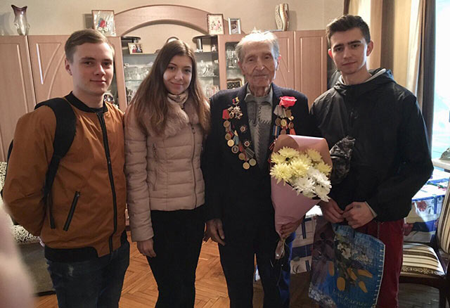 Students of the Chernigiv Institute congratulated veteran of the Second World War Petr Artemovich Bondarev on May 9