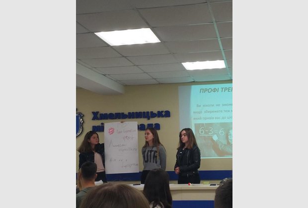 During the first day, the students worked with representatives of "Profi Training Studio" Tetyana Staruk and Oksana Kostenko. The program provided for the brainstorming "Leader = success?" During which the participants of the studio were looking for an answer to the question whether the leader automatically was successful, created a public organization during the game and presented it to the audience. Also heard the lecture "Effective Communication Leader".
