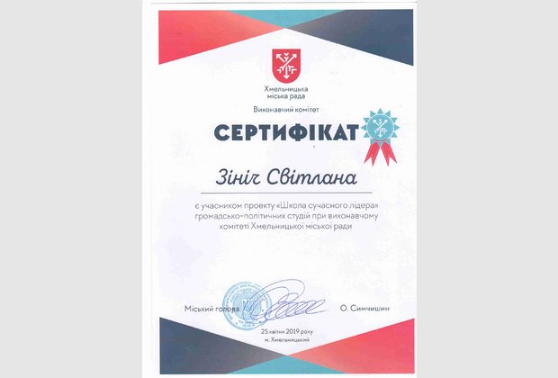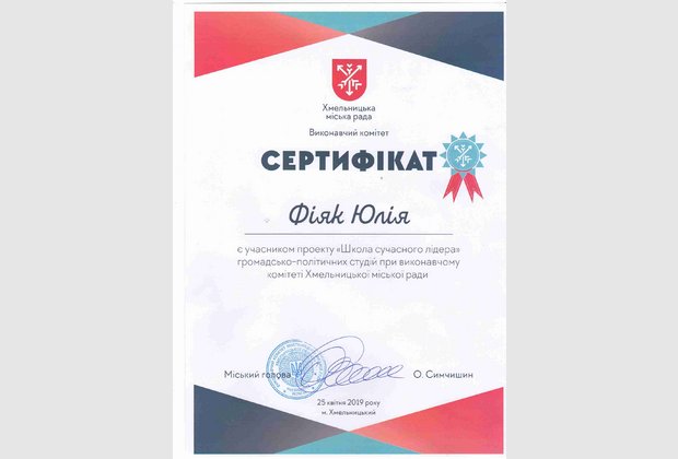 On April 26, the "Youth Center" School finished the public-political studies "School of the Modern Leader". With the completion of the curriculum, the guests were greeted by the head of the executive committee of the Khmelnytsky City Council Yulia Sabiy.