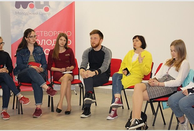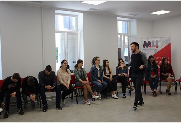During the last day, the participants of the studio worked with the director of the Youth Center Vladislav Hrebenyuk and the chairman of the Board of Youth NGO "Youth for the best future", psychologist Lesya Romanyuk.