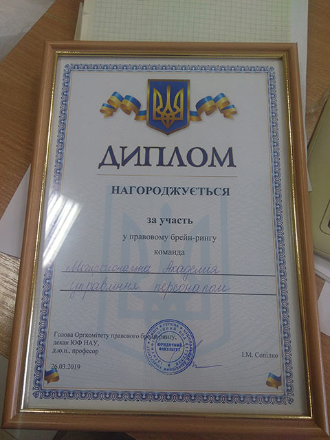 On March 26, 2019, foreign students from Educational-Scientific Institute of Law participated in the legal brain-ring among foreign students of legal higher education institutions.