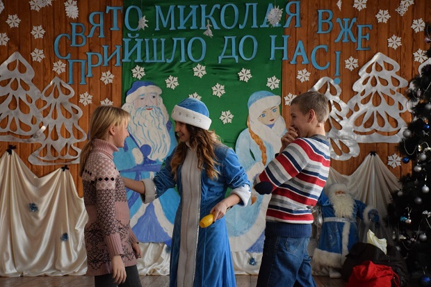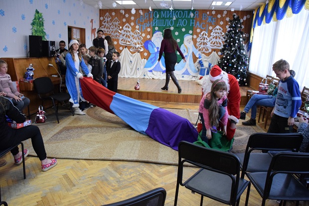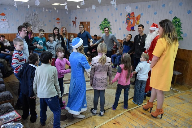So he took the presents, December 23, students went to the kids. Approaching the shelter was noticeable excitement of students, but once they saw the kids all slept voltage. The students prepared a bright New Year event. Gathered in the hall of the kids with a sinking heart and sincere curiosity expecting guests. Moments expectations and entered the hall Maiden. It zahaduvala kids puzzles, played in the cartoon quiz skills tested babies count. However, the most anticipated of course, was the arrival of Grandfather Frost on holiday. A good magician had interesting games with masks, perevtilyuyuchy kids in animals, offered to make a wish in the magic tunnel. The most emotional was the dance. Students Pertsova Vladislav Nikolayev and Vitaly sang inflammatory songs, during which Santa Claus and Snow Maiden, children with shelter and students circled in a festive dance.