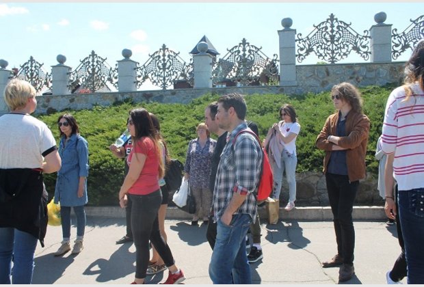 Excursion to the park began with the temple complex, which was built in 1999 by the architect Y. Babich on the river Rostovovitsa. According to the guide, the complex is considered a monument of charity, strength of spirit and architectural art. Then the tourists saw the Cross of Memory in honor of all those who died for our country in the Second World War (1941-1945). Walking along the central square with a blooming alley, everyone could see the fountain "Friendship of Peoples", which until the 90s was adorned with the Independence Square.