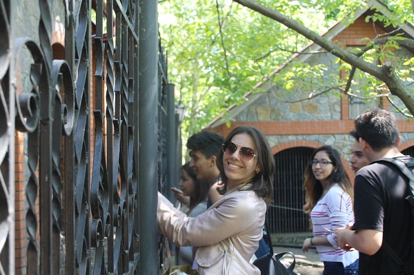 During the tour, the guide invited students to visit places where you can make a wish. The first place is a gazebo with a blue angel who holds a stone in his hands. This stone was brought from Israel, from the very place where Jesus turned water into wine and blessed the lovers for true love and the continuation of the human race. Today this stone is considered a wedding, and therefore there is a legend that having touched it and making a wish for love and creating a family, it will come true! The second place is on the bank of the river of Rostavitsa. Here on the rocky mountain sits a family of frogs-piggy banks, personifying well-being and prosperity. To the toad did not choke, and that the money in the family were, you need to throw her a coin. And the third place is a desire stone with an eye-triangle, which you need to rub with your hand and make any wish.