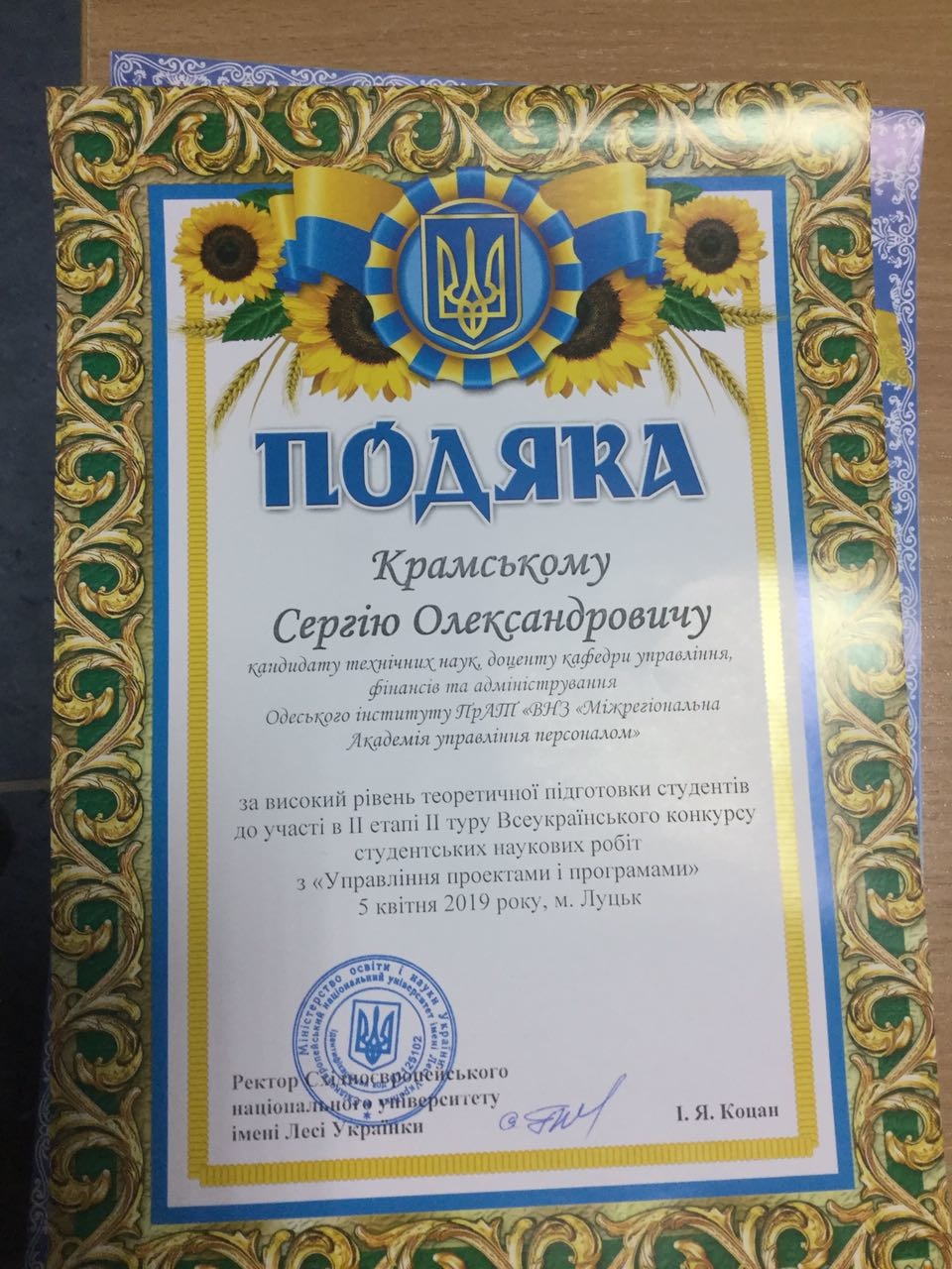 Jaroslav Mazhara, the student on specialty "Psychology" in Hryhoriy Skovoroda Pereyaslav-Khmelnytsky DPU, and Anna Mordvaniuk, the student on "Finance and Credit" at Semen Kuznets Kharkіv National Economic University took part in the 2nd round of the All-Ukrainian Student Olympiad. Participants received certificates and certificates of the participant, and their scientific supervisors candidate of psychological sciences Irina Kolomiets and senior teacher Larisa Kotenko - thanksgiving.