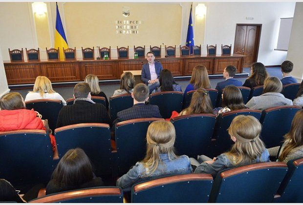During the visit to the Ministry of Justice of Ukraine, students talked with Deputy Minister of Justice of Ukraine Giya Getsadze. Visitors were interested in issues of employment, the procedure for joining the magistracy based on the results of external independent evaluation, the features of electronic declaration, the implementation of reforms, including the penitentiary system and the like.