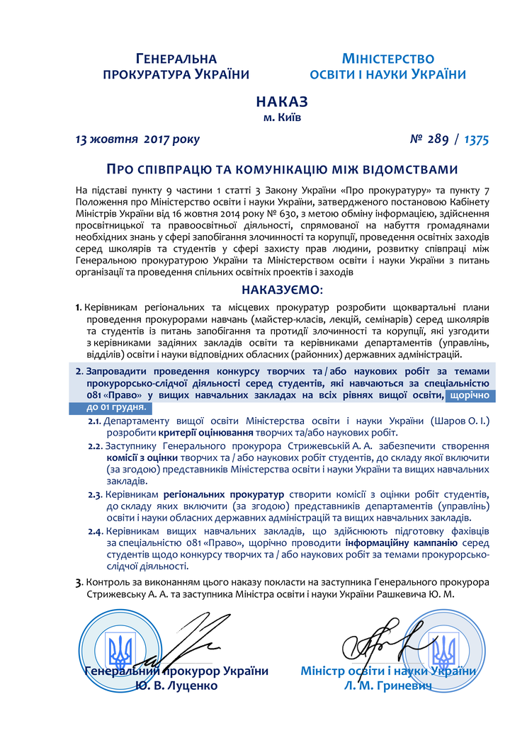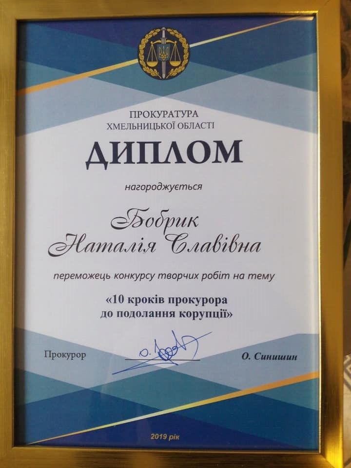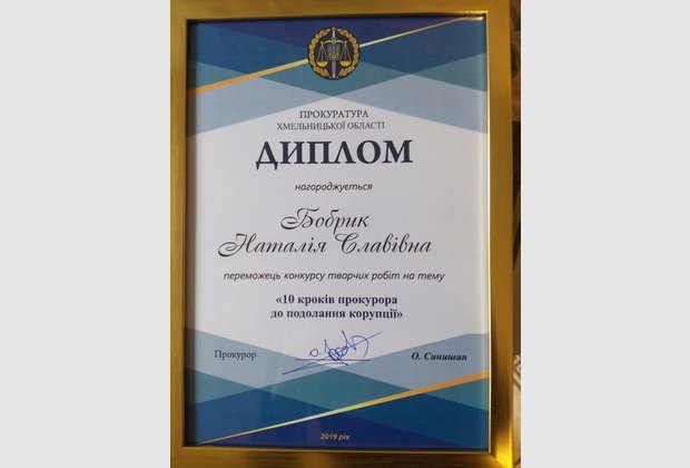 After the victory at the regional stage, the work of Natalia is directed to the General Prosecutor's Office of Ukraine, where, in the final of the competition, the commission, which will include specialists from the prosecutor's office, the Ministry of Education and Science, universities and scientific institutions, will identify the best works.