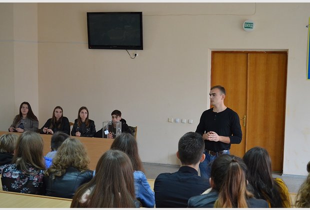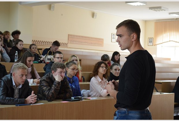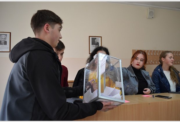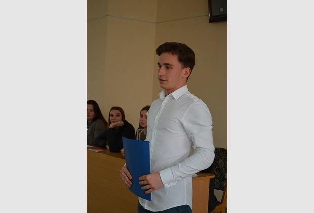 Announcing the candidate's speech, Dmytro Hryshchenko, as a freshman, assured that in order to solve student problems, he would need his experience of membership in self-governing bodies at school.