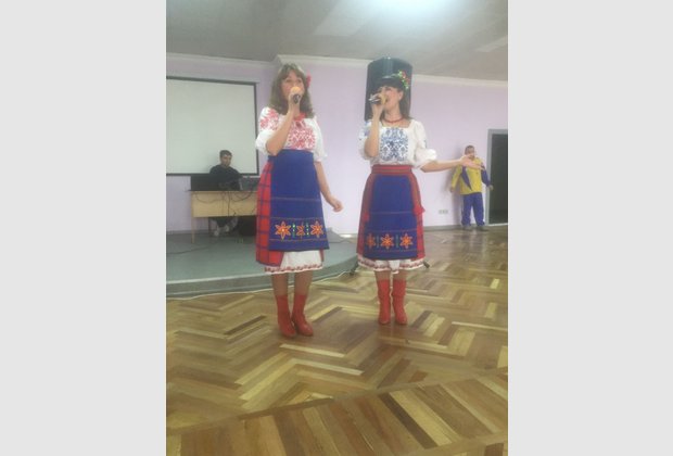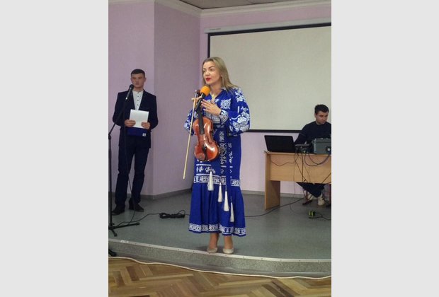 There were music pauses between the contests. The participants of the meeting greeted the talented Khmelnitsky violinist, the soloist of the Orchestra of the Academic State Cossack Song and Dance Ensemble "Cossacks of Podillya" Maya Onischuk. Her musical compositions, performed under the accompaniment of the violin, charmed everyone in the hall. Duet "Kozachka" (performers: Elena Urbanovich and Marina Klysnat) performed Ukrainian songs. Attractive emotions in all caused their singing the smallest participant, laureate of international competitions, pupil of gymnasium number 2 of Khmelnitsky Doklon Sofia.