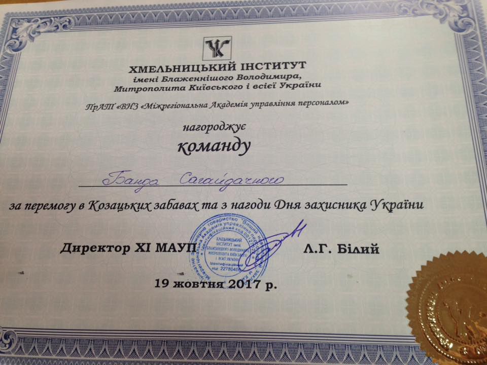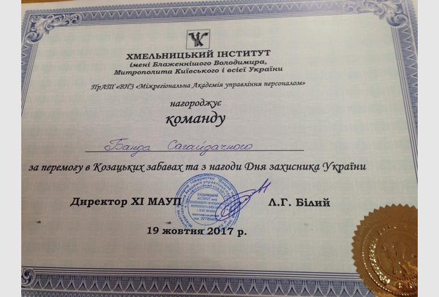 On October 19, 2017, at the Khmelnytsky Institute of the IAPM, a sports tournament "Cossack Fun" was held on the Day of the Defender of Ukraine.