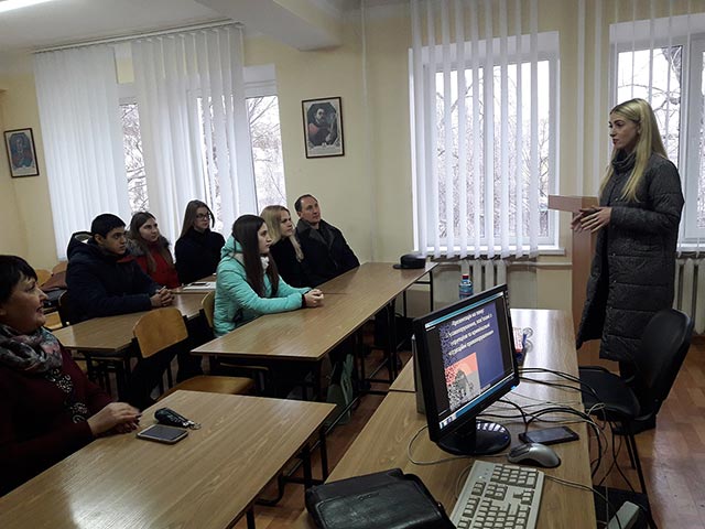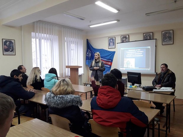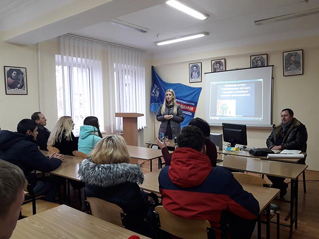 December 13, Within the Week of Law, the Representatives of the Main Territorial Department of Justice of the Luhansk Oblast visited the Severodonetsk institute of IAPM. They presented the material on the theme: "Corruption and ways to overcome it in Ukraine". Students were introduced to the experience of the Singaporean and Swedish anti-corruption systems. The main features of these systems and the possibility of their implementation in Ukraine were outlined. Representatives of the Justice Department examined with students the signs and factors of corruption in both the state as a whole and a single citizen. The interest raised the discussion of students' questions about the powers of specially authorized bodies in the field of prevention of corruption and the powers of the territorial administration of justice in the field of control of the legality of normative acts of local action. Representatives of the Justice Department reminded students about the project of the Ministry of Justice of Ukraine "I have a right!" and the possibilities of attraction to it.