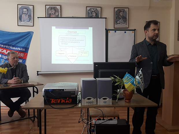 On Saturday, April 13, training "Modern Education, Motivation and Leadership" was held at IAPM Severodonetsk Institute. The training was conducted by Mykola Anatoliyovych Zhurba, Doctor of Philosophy, Professor, Head of the NGO "Соборність", editor-in-chief of the magazine Virtus. The focus of the report was the thesis that, at the current stage of development of a higher school, a leadership paradigm and freedom of creativity are of particular relevance. Mykola Anatoliyovych emphasized that modern employers expect that the candidate will have dozens of different skills: the ability to think and manage creativity in time, communication skills, network, project management, team formation.
